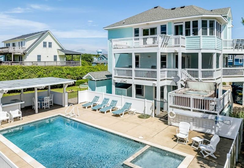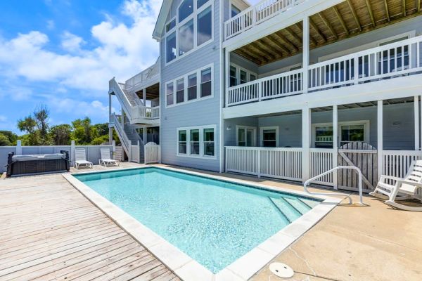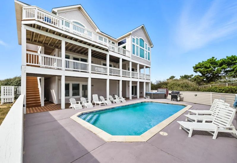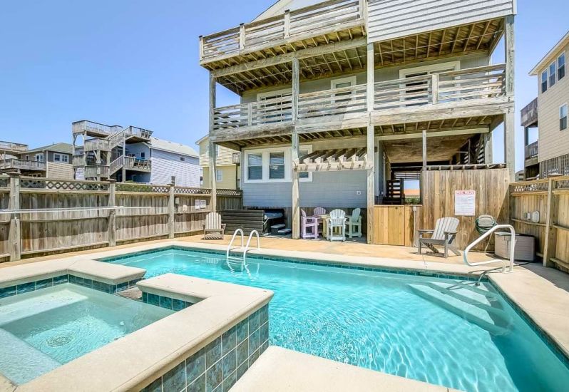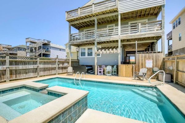 OBX Diamond is a 7 bedroom, sound front, dog-friendly home in Kitty Hawk that offers a private pool, foosball and pool table, hot tub, pool towels and Blue standard bedding, and more. Guests noted that this home... See More
